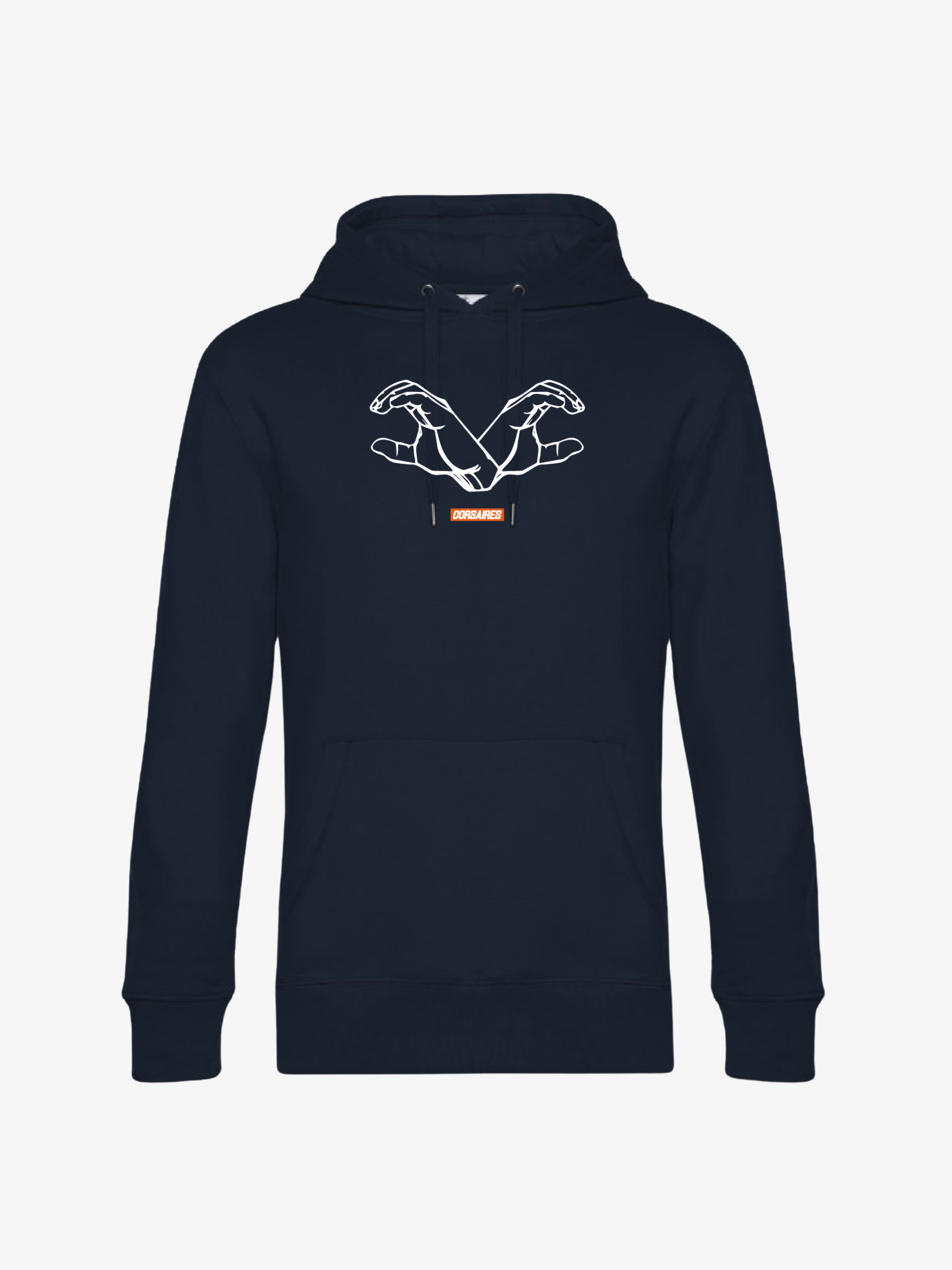Détails à surpiqûres doubles. Capuche à double épaisseur de tissu cordons de la même couleur. Poche frontale kangourou. Bords de manche et bord inférieur côtelés. Certifié Vegan.