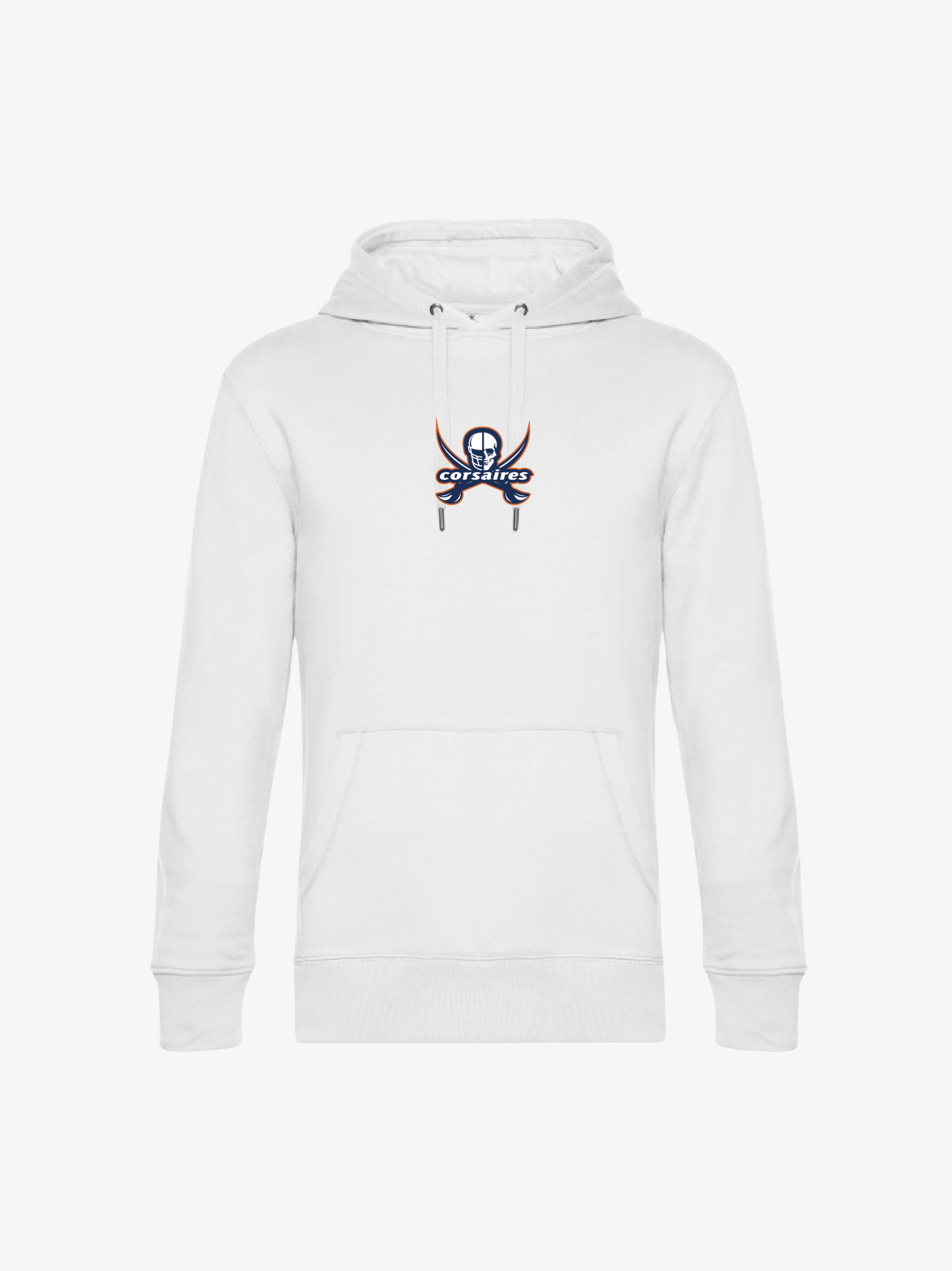 Détails à surpiqûres doubles. Capuche à double épaisseur de tissu cordons de la même couleur. Poche frontale kangourou. Bords de manche et bord inférieur côtelés. Certifié Vegan.